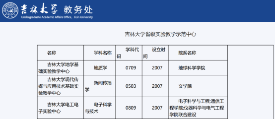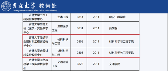 1-2. 吉林大学省级实验教学示范中心(2个):无机非金属材料工程实验教学中心、金属材料实验教学中心,2016.08.30